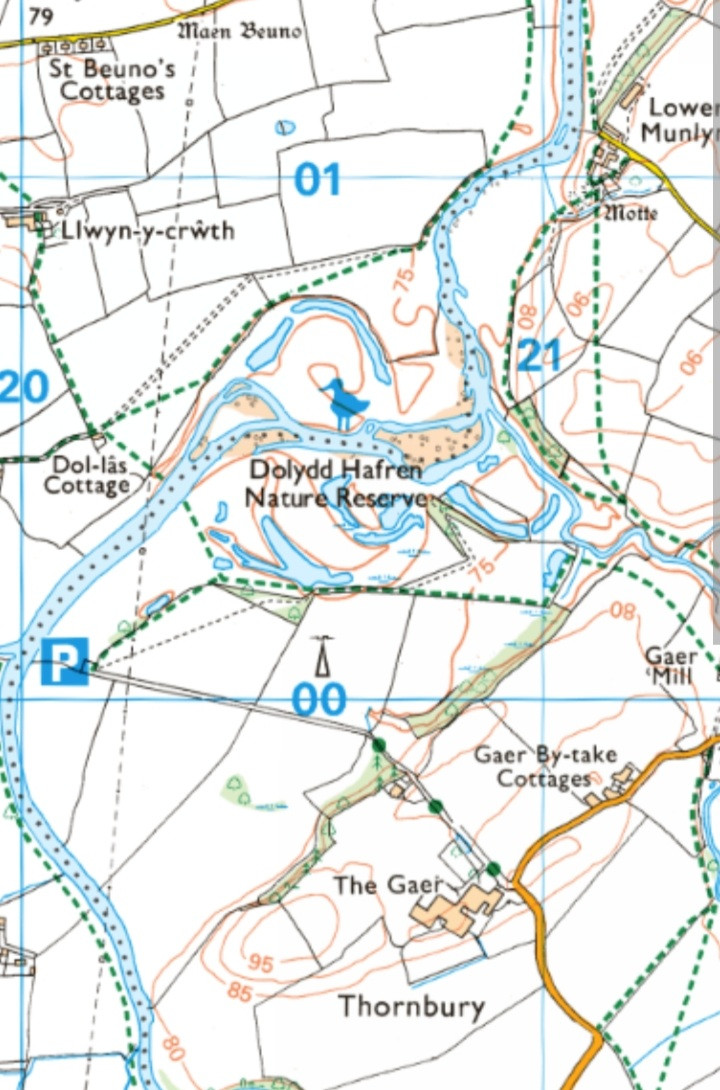 At Dolydd Hafren there are bird hides. Waders, Рибалочка блакитний, Повзик звичайний, Плиска гірська, water voles, Шуліка рудий, Сапсан, otters, Крех великий, Набережник палеарктичний, Снігур звичайний may be seen.