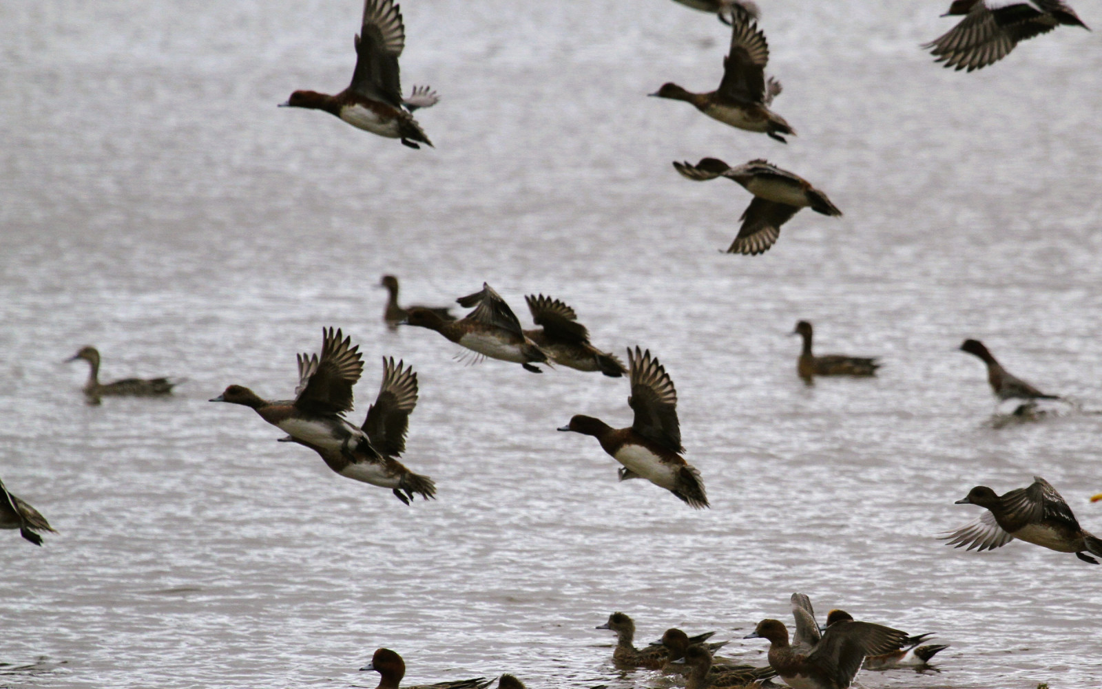 Some of the birds you can see here are Грицик великий, Грицик малий, Казарка чорна, Казарка канадська, Гуска сіра, Шилохвіст, Свищ євразійський, Чапля сіра, Крижень, Широконіска північна, Чернь чубата, Чоботар синьоногий, Баклан великий, Коловодник звичайний, Коловодник великий and Кульон великий.